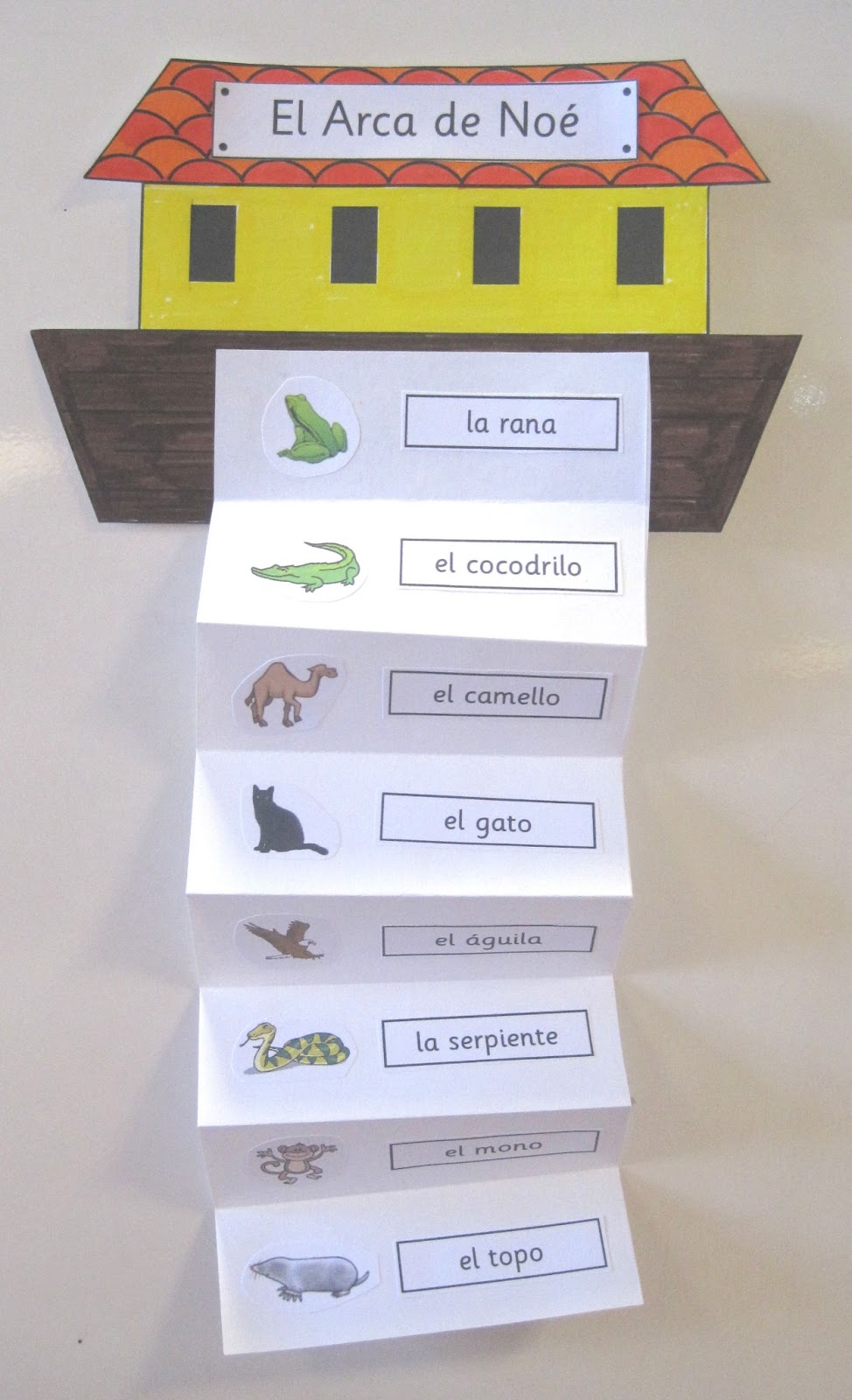 Here is a variation on the concertina book which was invented by Rachel Smith. The concertina forms the the steps up which the animals climb into the Ark. My Year 2 class loved this!
